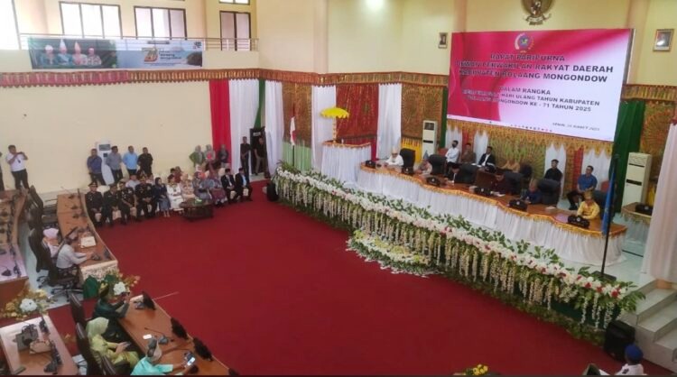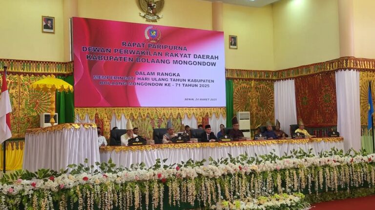 Detotabuan.com,BOLMONG – Dewan Perwakilan Rakyat Daerah (DPRD) menggelar rapat paripurna istimewa peringatan Hari Ulang Tahun (HUT) Kabupaten Bolaang Mongondow (Bolmong) ke-71, Senin (24/03/2025).