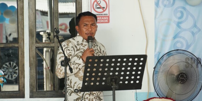 Anggota DPRD Bolsel Halilintar Kadullah saat menyampaikan sambutan pada launching SPPG Helumo