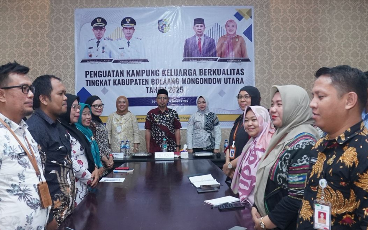 Detotabuan.com,BOLMUT — Bupati Bolaang Mongondow Utara (Boltara), Dr. Sirajudin Lasena, SE., M.Ec.Dev, secara resmi membuka kegiatan Penguatan Kampung Keluarga Berkualitas, yang digelar di ruang rapat Dinas PPKBPPPA Kabupaten Bolmut, Rabu (16/10/2025).