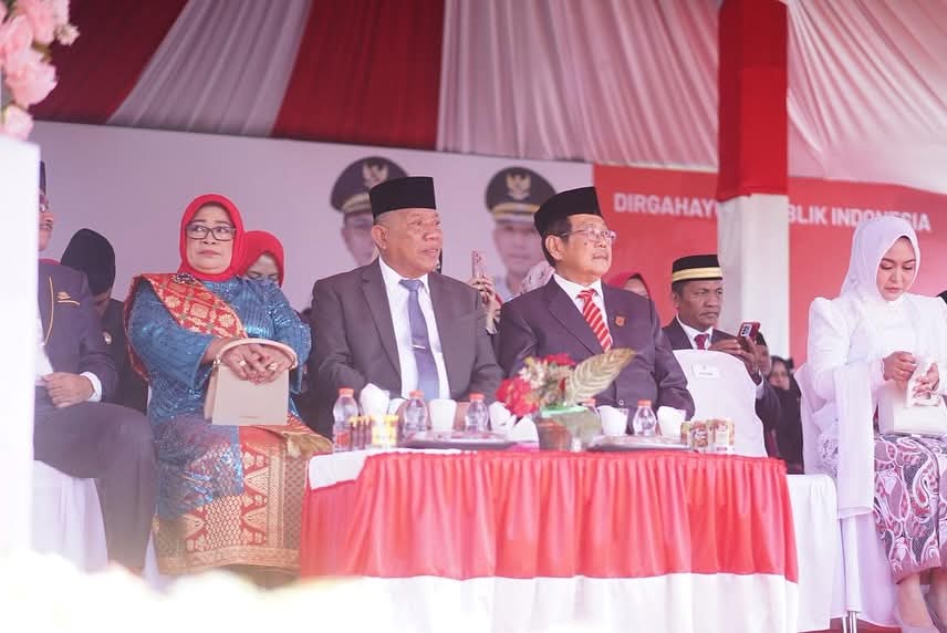 Bolmut, Detotabuan.com – Ketua dan Wakil Ketua Dewan Perwakilan Rakyat Daerah (DPRD) Kabupaten Bolaang Mongondow Utara bersama seluruh anggota dewan mengikuti upacara peringatan Hari Ulang Tahun (HUT) ke-80 Kemerdekaan Republik Indonesia yang berlangsung khidmat di Lapangan Kembar, Minggu (17/8/25)