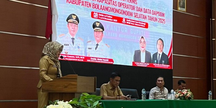 Detotabuan.com,BOLSEL – Dinas Pendidikan dan Kebudayaan (Disdikbud) Kabupaten Bolaang Mongondow Selatan (Bolsel), kembali memperkuat tata kelola data pendidikan melalui pelaksanaan Bimbingan Teknis (Bimtek) Peningkatan Kapasitas Operator dan Pengelolaan Data Dapodik, untuk jenjang SD dan SMP Tahun 2025.