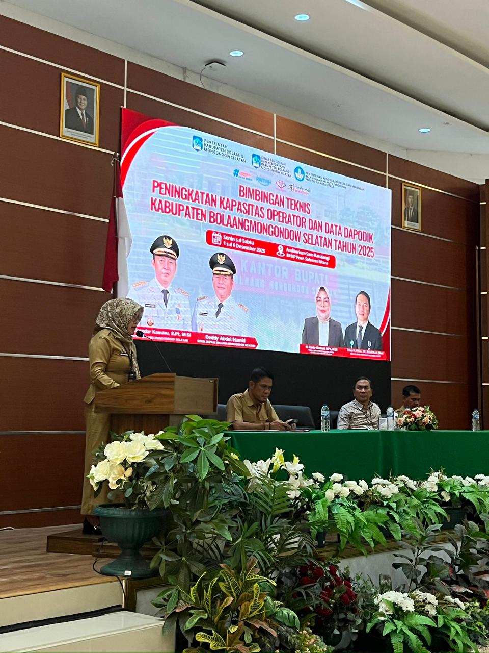 Kepala Disdikbud Bolsel, Rante Hattani, S.Pd, M.Pd menegaskan, penguatan kapasitas operator bukan hanya kebutuhan teknis, tetapi juga investasi penting bagi keberlanjutan mutu pendidikan di Bolsel.