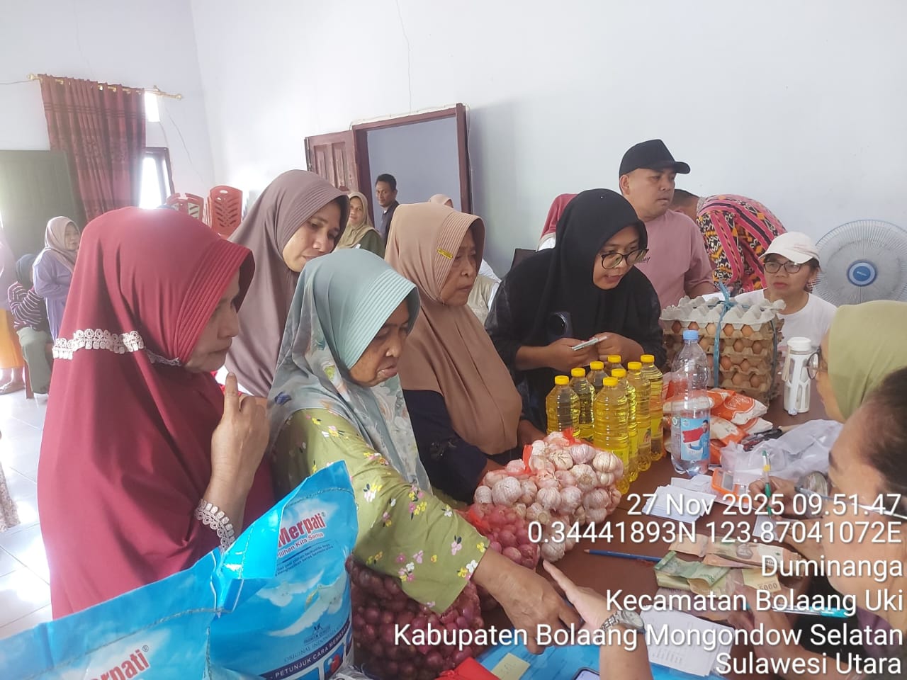 Detotabuan.com,BOLSEL — Pemerintah Provinsi Sulawesi Utara kembali menghadirkan Gerakan Pangan Murah (GPM) untuk memastikan ketersediaan dan keterjangkauan harga kebutuhan pokok menjelang Hari Besar Keagamaan Nasional (HBKN) Natal 2025 dan Tahun Baru 2026 di Desa Duminanga, Kecamatan Bolaang Uki, Kabupaten Bolaang Mongondow Selatan (Bolsel).