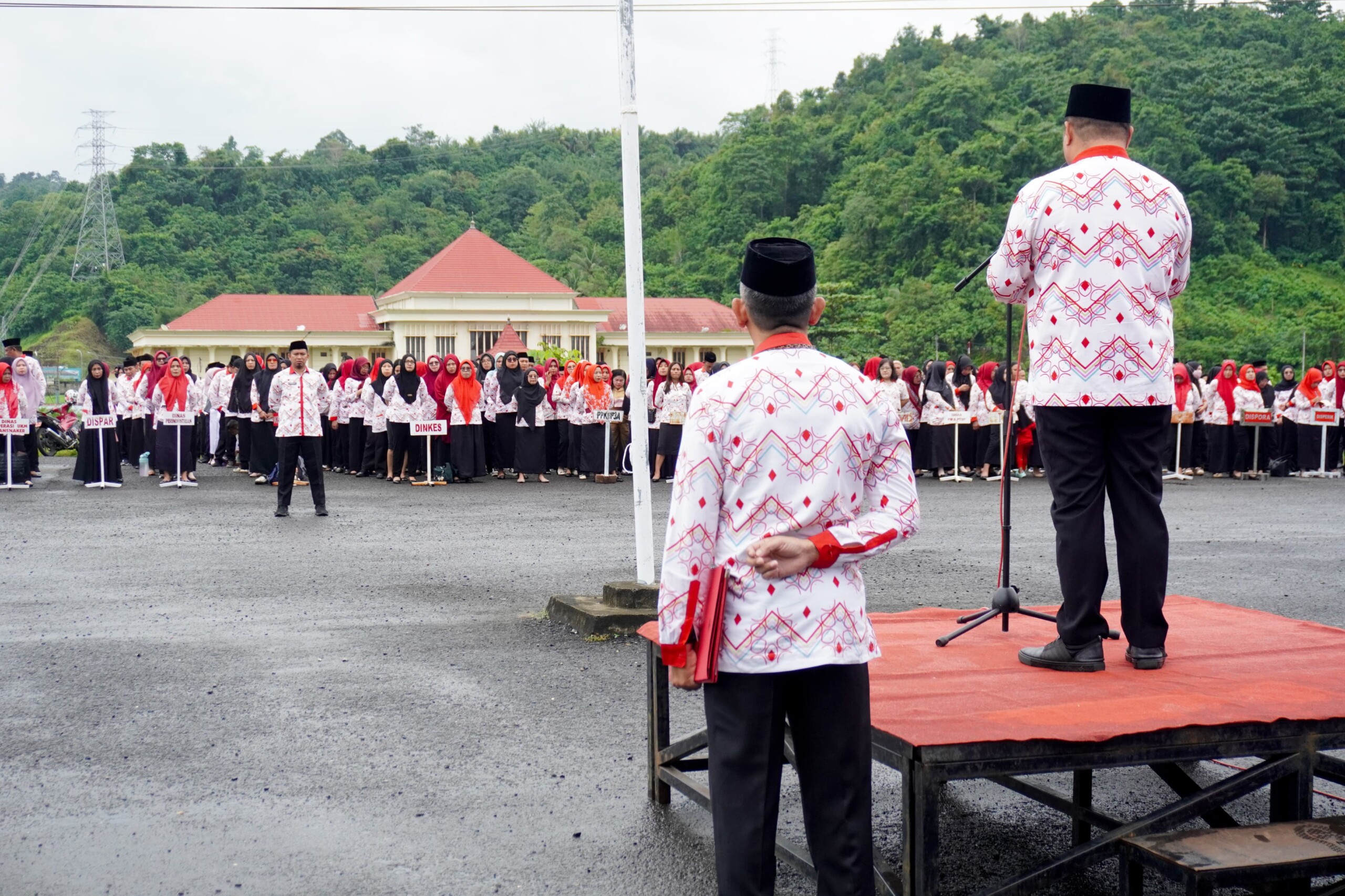 Upacara di pimpin oleh Bupati Bolaang Mongondow Selatan yang di wakili oleh Sekertaris Daerah M . Arvan Ohy. SSTP, MAP.