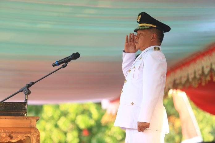KOTAMOBAGU,DETOTABUAN.COM-Wakil Wali Kota Kotamobagu, Nayodo Koerniawan, S.H., bertindak sebagai Inspektur Upacara (Irup) pada Upacara penurunan Bendera Merah Putih dalam rangka memperingati Hari Ulang Tahun (HUT) ke – 78 Kemerdekaan Republik Indonesia, Kamis (17/08/2023).