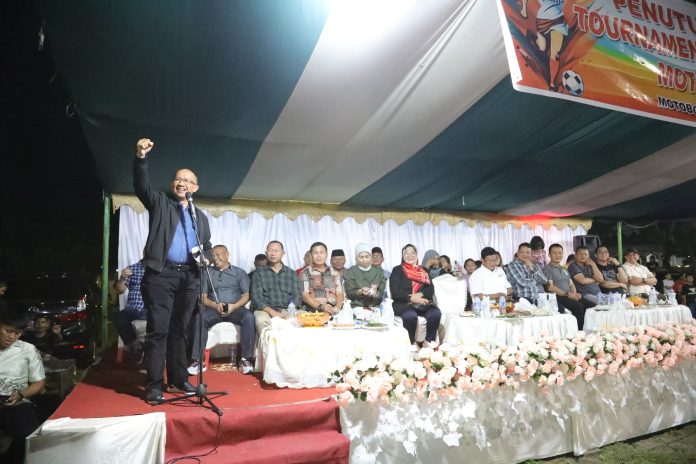 KOTAMOBAGU,DETOTABUAN.COM-Penjabat Wali Kota Kotamobagu Dr. Drs. Asripan Nani, M.Si menutup secara resmi Turnamen Sepak Bola se Bolaang Mongondow Raya Motoboi Kecil Cup 2023, bertempat di Lapangan Aruman Jaya Kelurahan Motoboi Kecil Kecamatan Kotamobagu Selatan, Senin (20/11/2023).