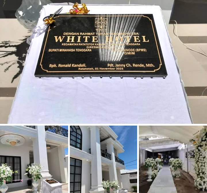 Detotabuan.com,RATATOTOK — Satu lagi destinasi penginapan berkelas hadir di kawasan wisata Ratatotok, Kabupaten Minahasa Tenggara. White Hotel, milik keluarga Emor Supit, resmi beroperasi setelah diresmikan melalui ibadah pemberkatan yang dipimpin oleh Pendeta Jani C.H. Rende, M.Th., pada Sabtu 1 November 2025.