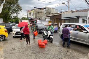 BOLMONG,DETOTABUAN.COM-– Karyawan PT Pegadaian (Persero) Syariah Cabang Kotamobagu, turun ke jalan dan membagikan makanan berbuka puasa (takjil) kepada pengendara yang melintas, di