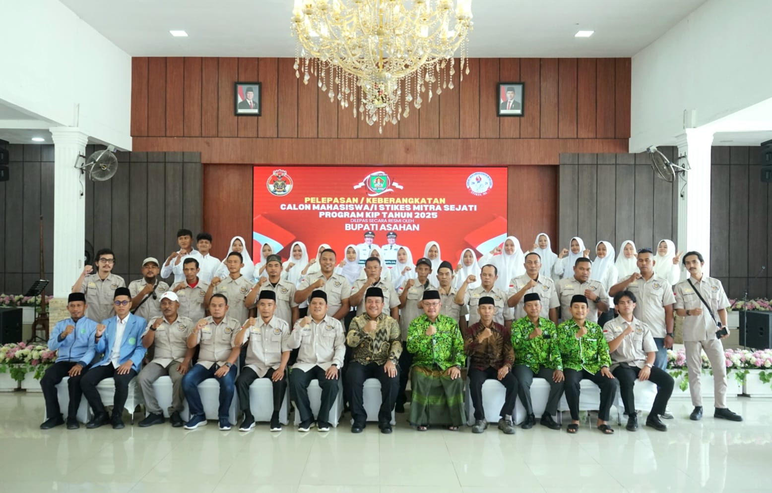 Bupati Asahan, Taufik Zainal Abidin, S.Sos., M.Si, melepas keberangkatan 17 calon mahasiswa/i asal Asahan yang diterima di STIKES Mitra Sejati Medan melalui Program KIP Tahun 2025 di pendopo rumah Dinas Bupati Asahan, Minggu (7/9) lalu.