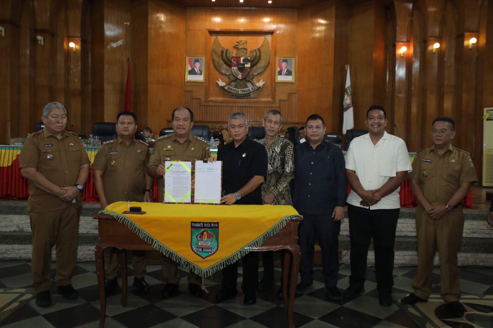 Kemudian dilanjutkan dengan penandatanganan keputusan persetujuan bersama oleh Ketua DPRD Kabupaten Asahan dan Bupati Asahan terkait ranperda Kabupaten Asahan tentang RPJMD Kabupaten Asahan Tahun 2025-2029 menjadi peraturan daerah kabupaten Asahan.