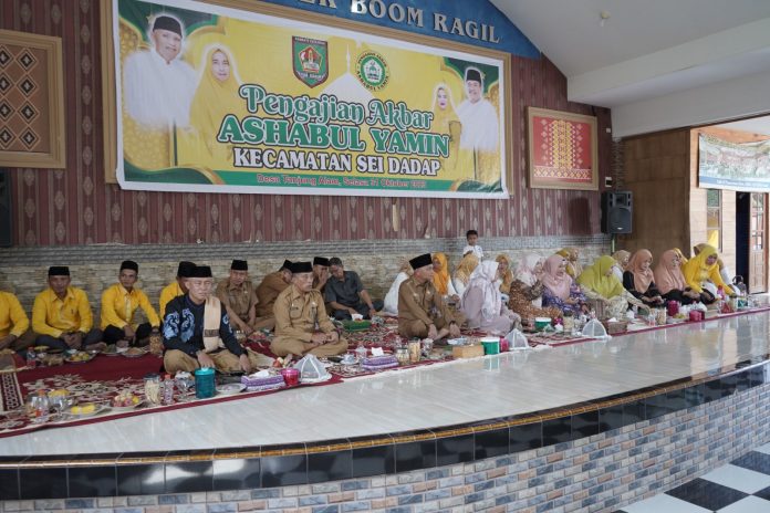 Detotabuan.com,ASAHAN – Bupati Asahan H. Surya, BSc mengikuti Pengajian Akbar Ashabul Yamin Kecamatan Sei Dadap, Selasa (31/10/2023). Pengajian akbar ini dipusatkan di Water Boom Ragil Desa Tanjung Alam Kecamatan Sei Dadap dihadiri juga Asisten Pemerintahan dan Kesejahteraan Rakyat, Forkopimcam Sei Dadap, Kepala Desa se-Kecamatan Sei Dadap, Ketua TP PKK Kabupaten Asahan beserta pengurus, Ketua TP PKK Desa se-Kecamatan Sei Dadap dan jamaah pengajian Ashabul Yamin Kecamatan Sei Dadap.