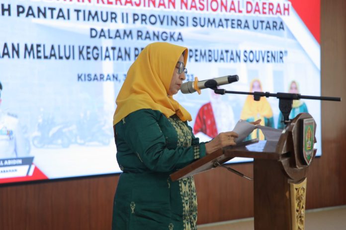 Sementara Ketua Dekranasda Kabupaten Asahan Ny. Hj. Titiek Sugiarti Surya dalam sambutannya berharap kegiatan ini dapat mengembangkan sumberdaya pengrajin, dan menciptakan pelaku usaha baru di 5 Kabupaten/Kota yang mengikuti pelatihan, agar pengrajin dapat menghasilkan produk khas buatan daerah dengan menggunakan wastra daerah masing – masing.