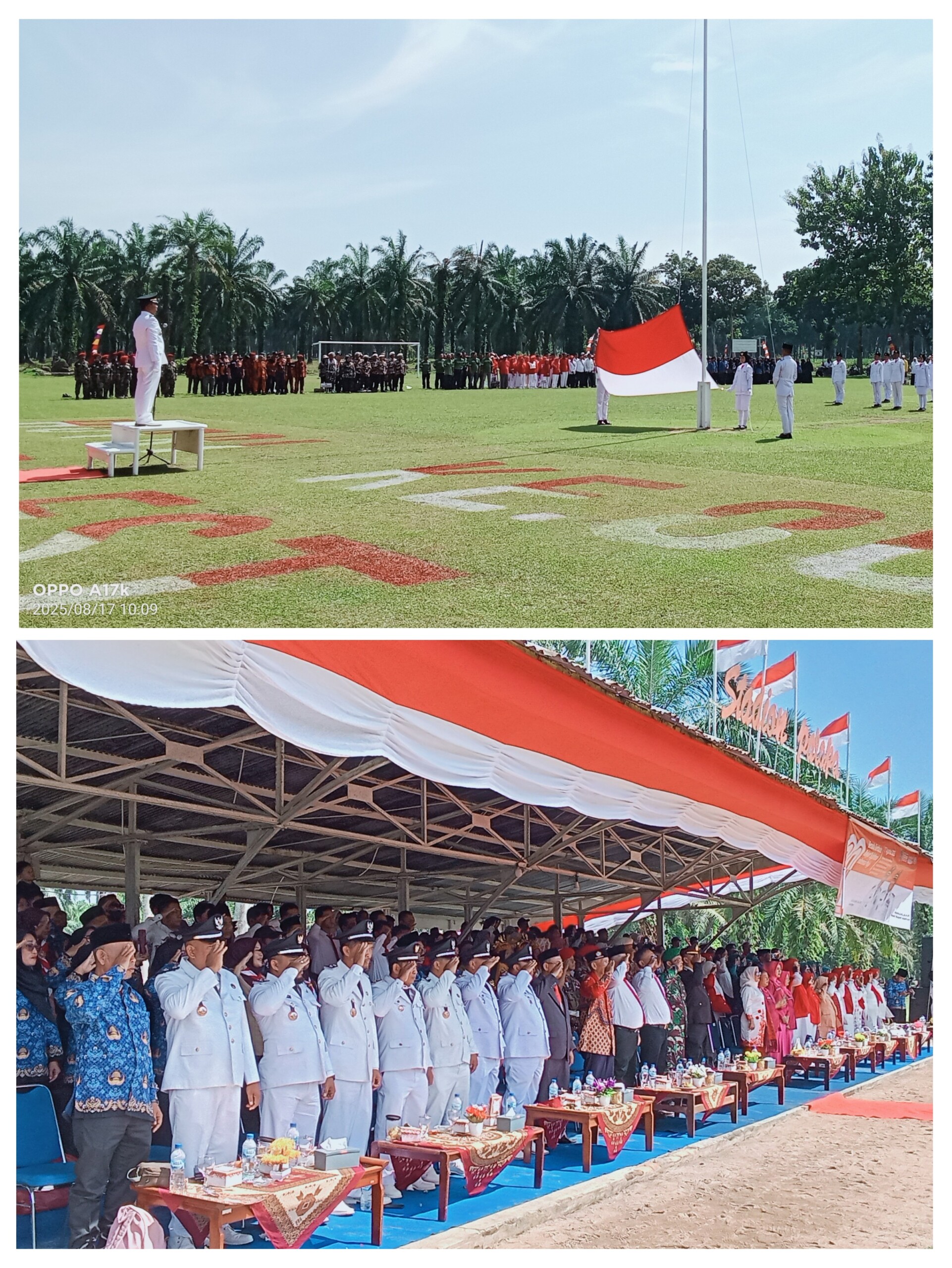 Penyelenggaraan upacara peringatan HUT ke-80 Republik Indonesia di Kecamatan Rahuning di lapangan bola kaki PT Lonsum Gunung Melayu berjalan sukses dan khidmat, Minggu (17/8).