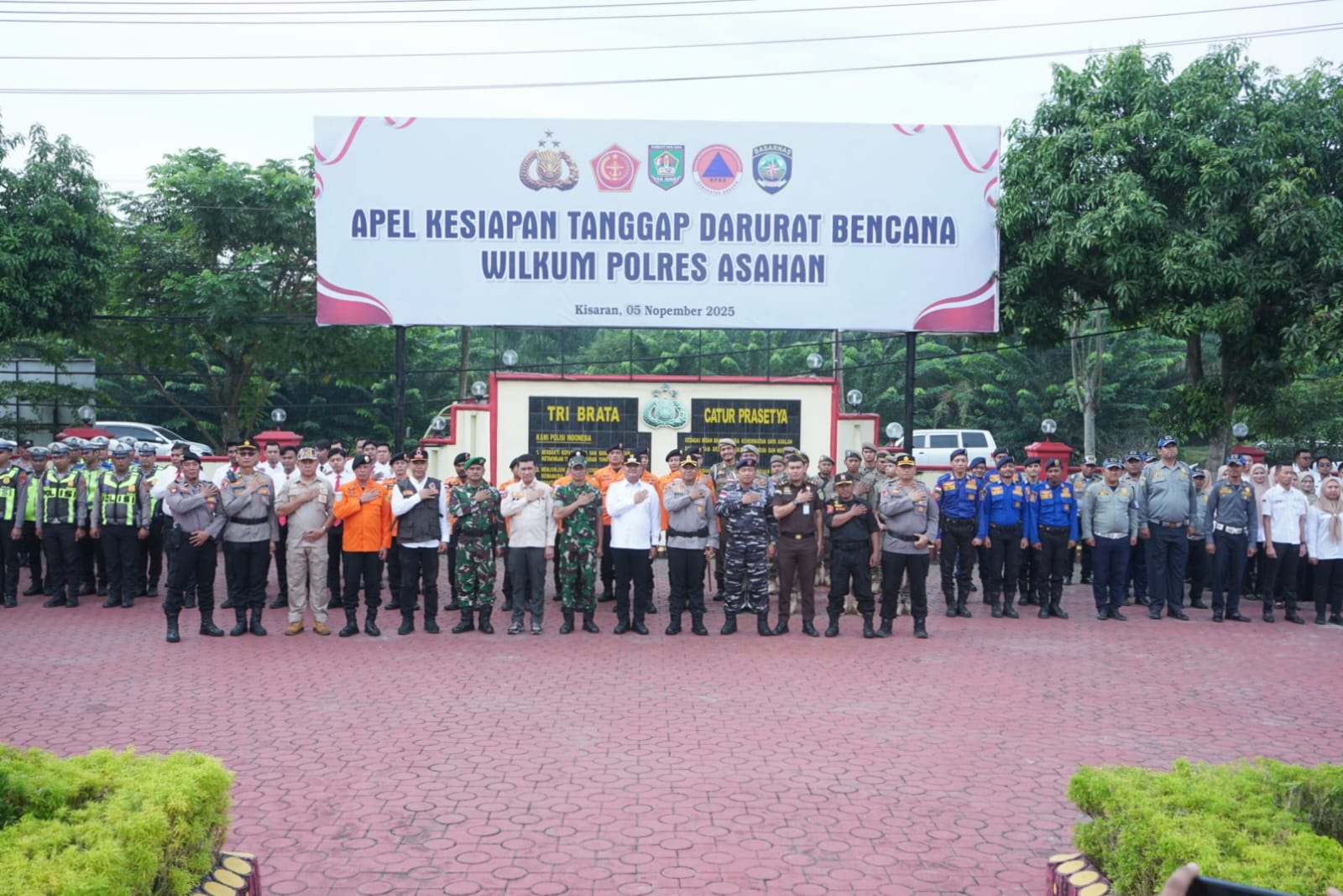 Kegiatan apel yang dipimpin oleh Kapolres Asahan, AKBP Revi Nurvelani, S.H., S.I.K., M.H. ini diikuti unsur Forkopimda, OPD, Pramuka, dan berbagai relawan kebencanaan.