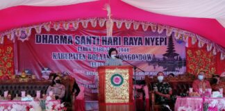 DETOTABUAN.COM, Bolmong – Bupati Bolaang Mongondow (Bolmong) Yasti Soepredjo Mokoagow, menghadiri perayaan Dharma Santi hari raya Nyepi tahun baru saka 1944 tingkat