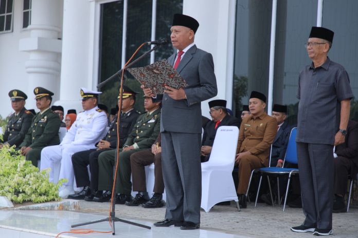 Detotabuan.com,ASAHAN – Suasana khidmat mewarnai upacara peringatan Hari Kesaktian Pancasila yang digelar di Halaman Kantor Bupati Asahan, Minggu (01/10/2023) pagi. Upacara tersebut diikuti ratusan peserta dari pelajar, ASN, TNI, dan Polri.