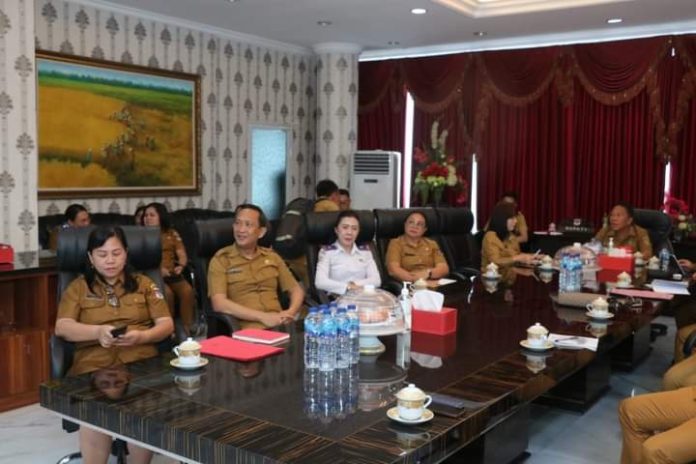 Turut hadir mendampingi Bupati dan Wakil Bupati dalam kegiatan Rapat kordinasi Bersama KEMENDAGRI, Sekdakab Minahasa Selatan Bersama Pimpinan SKPD Terkait. (Chintya)