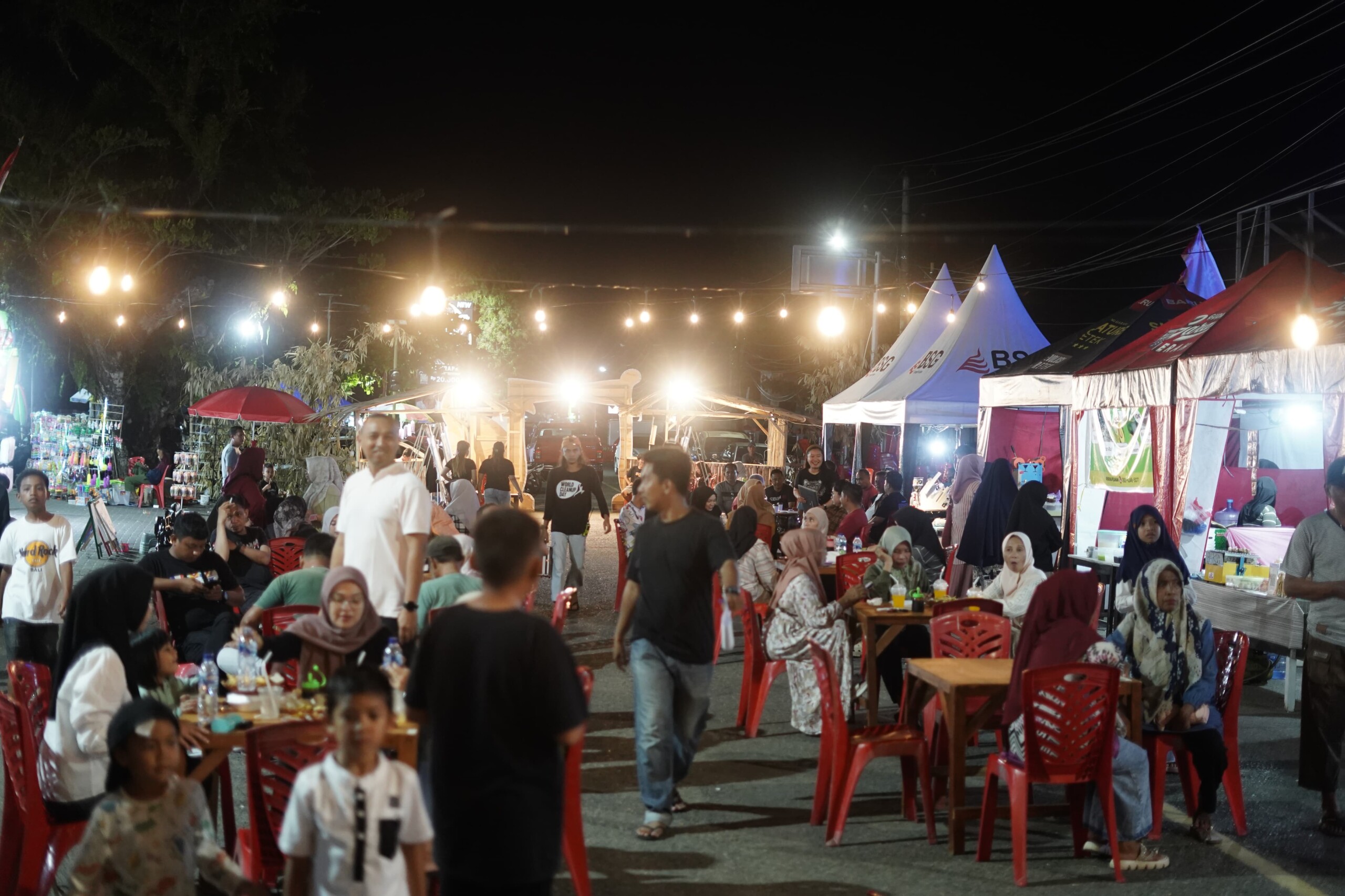 Di area sekitar, tampak ramai UMKM lokal yang menyajikan aneka kuliner dan jajanan tradisional khas Bolaang Uki, memperlihatkan geliat ekonomi rakyat yang tumbuh seiring semangat pelestarian budaya.