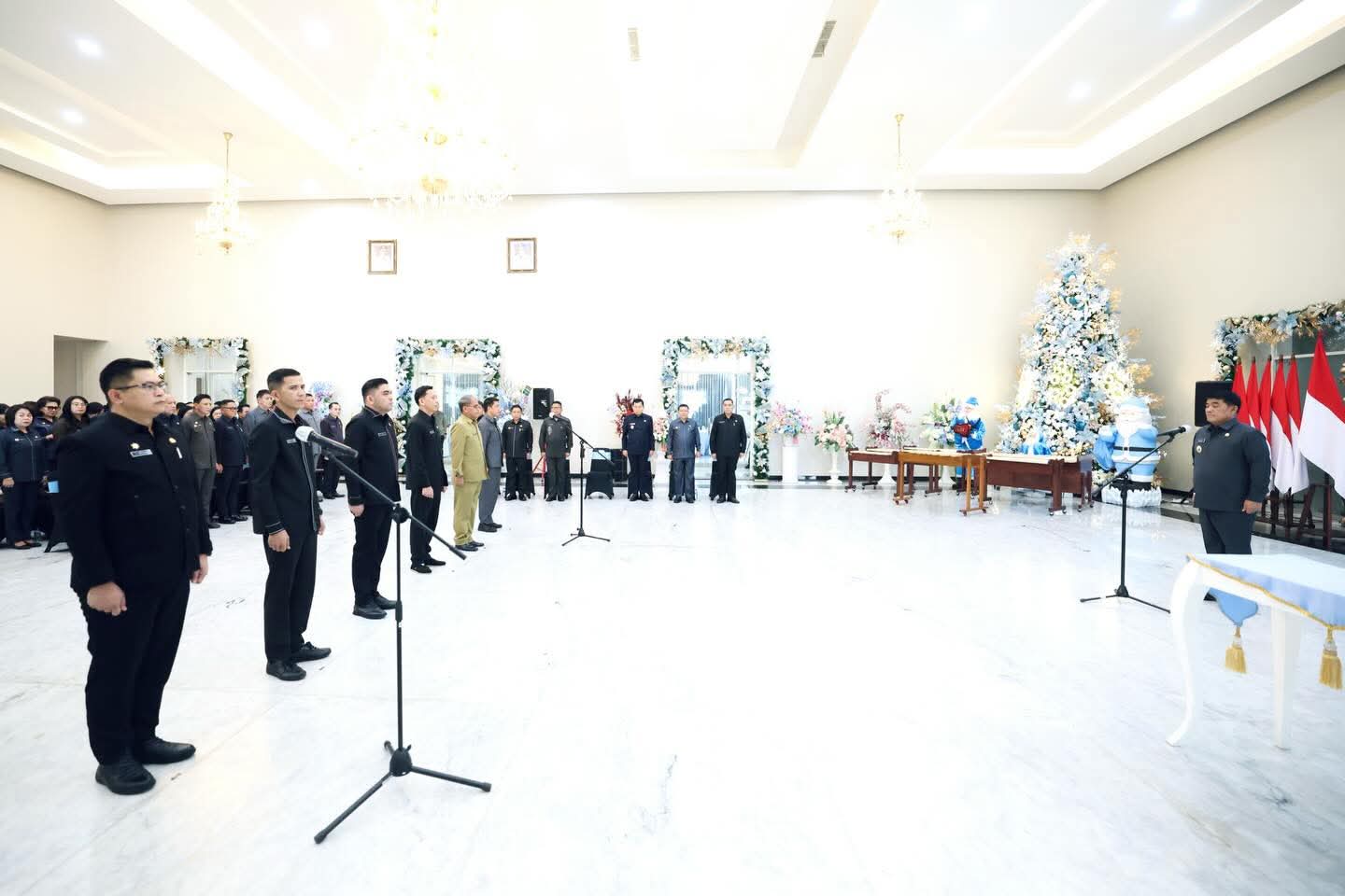 Pelantikan dan pengambilan sumpah jabatan digelar di Wisma Negara Bumi Beringin, Manado, Selasa (30/12/2025). Suasana berlangsung khidmat, namun sarat pesan tegas dari orang nomor satu di Sulawesi Utara itu. YSK menekankan bahwa jabatan bukanlah simbol kebanggaan, melainkan tanggung jawab yang harus dijalankan dengan etos kerja dan integritas tinggi.